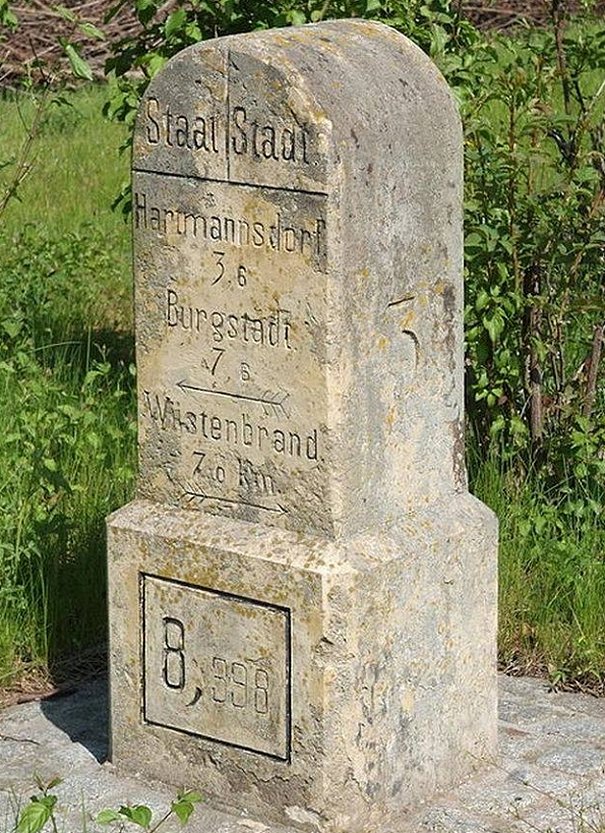 Ab 1859 bis 1866 begann man im Königreich Sachsen Meilensteine aufzustellen. Eigentümer der Meilensteine sind in Sachsen die jeweiligen Straßenbaulastträger der Straßen und Wege, an denen diese Steine stehen.