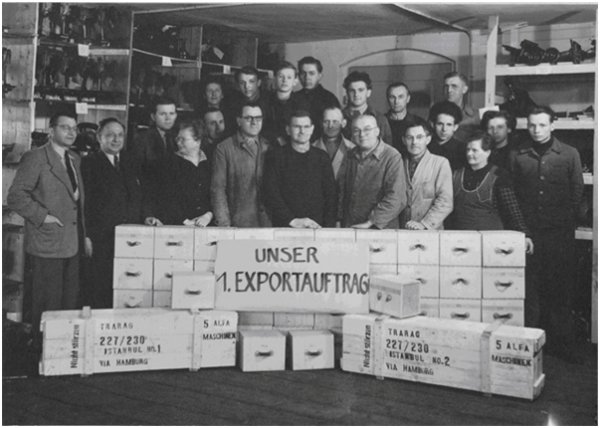 | 1968 | Ab diesem Jahr übernimmt die Firma die Umstellung von Krafttafeln auf Einzelantrieb der Nähmaschinen für Kleinbetriebe und Produktionsgenossenschaften des Handwerks (PGH). | ||||||||||||||||||||