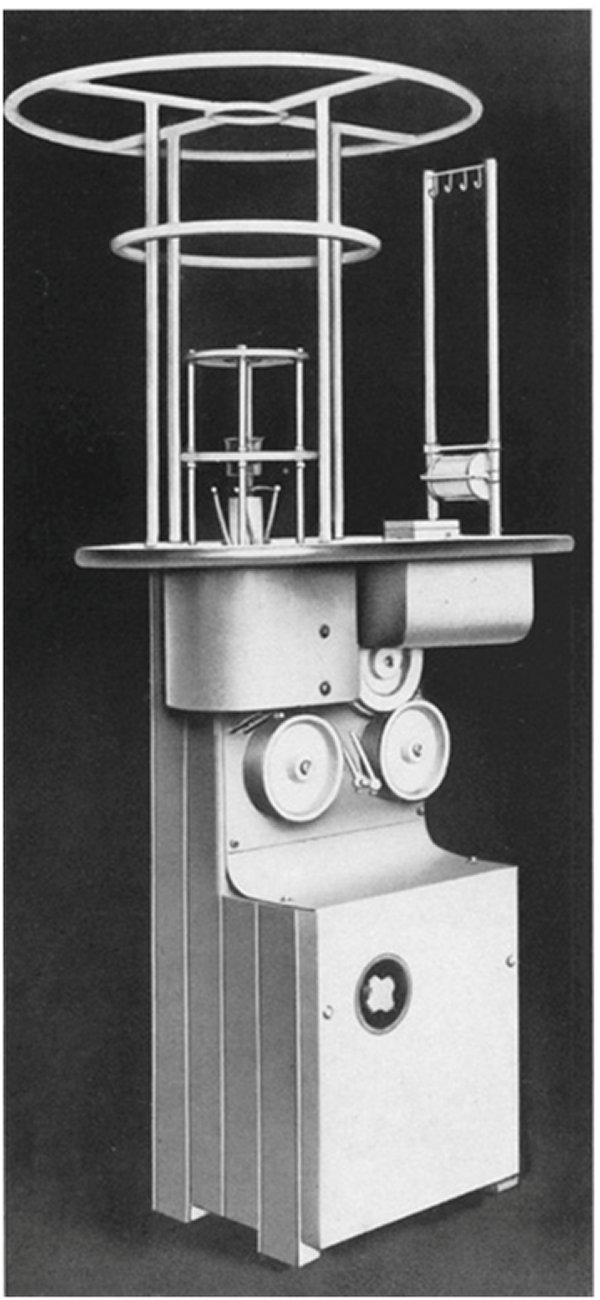 | 1954 | zieht die Firma in den ersten Stock des Gebäudes der ehemaligen Firma Reinhold Esche, damals Arno-Förster-Straße 2a. Der separate Treppenaufgang zu diesen Räumen, in denen sich derzeit eine Arztpraxis befindet, existiert nicht mehr. Hier wird die Fertigung der Repassiermaschine, die vornehmlich an Dienstleistungsfirmen geliefert wird, auf 100 Stück pro Monat gesteigert. Diese Maschine bringt der Firma Aurich den ersten Exportauftrag. | ||||||||||||||||||||