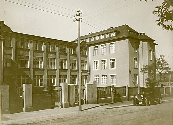 | 1907 | Das 1893 errichtete Gebäude konnte bald aufgestockt werden. 1907 wurde der Betrieb durch einen Anbau erweitert, den sogenannten „Mittelbau“. | |