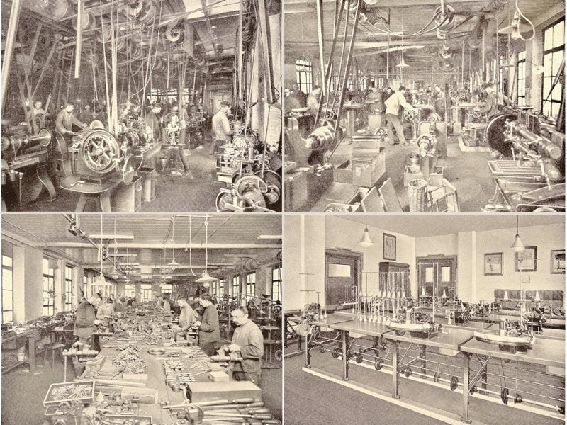 | 1882 | baut er dort eine kleine Fabrik. |