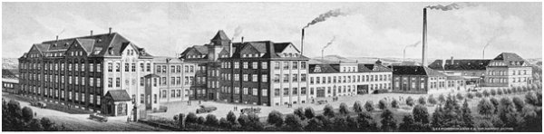 | 1882 | auf die damalige Schützenstraße (heute Pestalozzistraße), wo eine kleine Fabrik errichtet wird. Die Firma wächst kontinuierlich und beschäftigt | ||||||