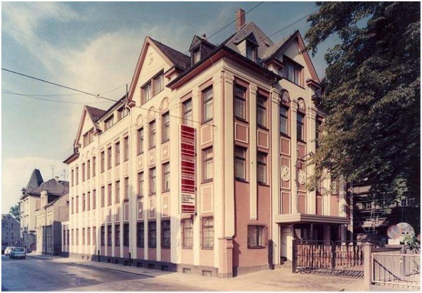 | 1950 | wird die Einrichtung des Betriebsteiles Helenenstraße in die Pestalozzistraße verlagert. Die Maschinen kommen größtenteils in die leergeräumte Maschinenhalle und werden auf Einzelantrieb umgebaut. Alle Beschäftigten erhalten neue Arbeitsplätze in den Räumen des sogenannten Hauptwerkes. Das Werk 2 (Helenenstraße) wird zu einer Lehrwerkstatt mit Betriebsberufsschule umgebaut. Außerdem entstehen Räume für Konstruktions- und Entwicklungsabteilung. | ||||||