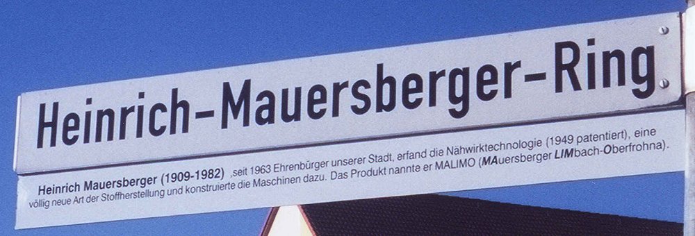 Die Hauptstraße im Neubauviertel am Wasserturm ist nach dem Erfinder der Nähwirktechnik benannt worden.