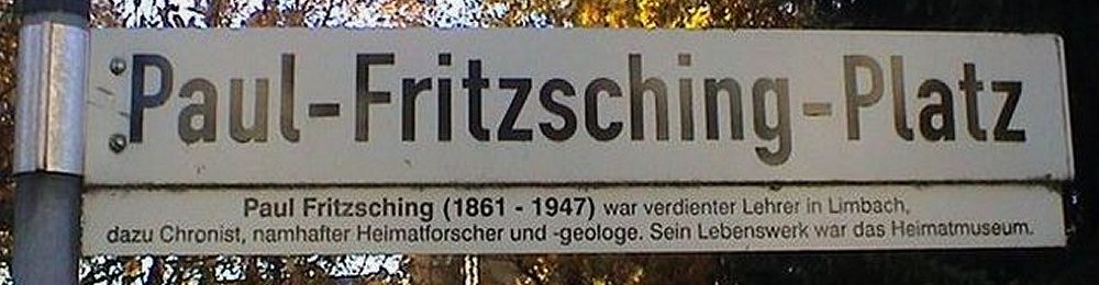 Der Aufbau des Heimatmuseums in Zusammenarbeit mit seinem Kollegen Paul Seydel ist sicher einer der großen Verdienste des Lehrers und Heimatforschers Paul Fritzsching. Hätte der begrenzte Raum des Zusatzschildes nicht Einhalt geboten, dann müsste hier auch stehen, dass Fritzsching zahlreiche Aufsätze zur Geschichte der Innung, der Stadt und der Region verfasst und publiziert hat. Diese und seine tagebuchartigen Aufzeichnungen aus den "ersten 50 Jahren Limbachs als Stadt" sind noch heute eine Fundgrube für die Arbeit der Heimatforscher.