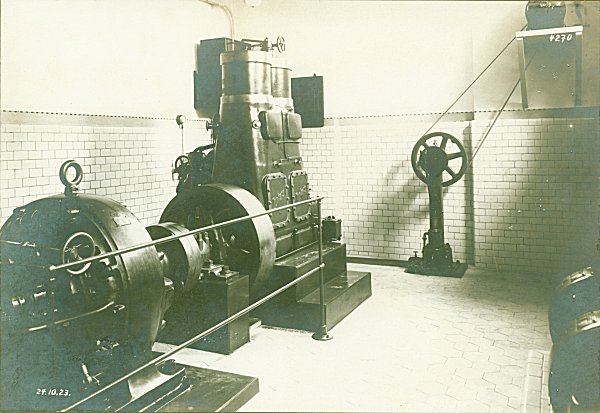 | 1924 | Im Zusammenhang mit dem „Neubau“ wurde 1924 auch, das sogenannte „Maschinenhaus“ errichtet, in dem Wohnungen für Betriebsangehörige entstanden. Außerdem befanden sich 2 Garagen, die Kohleheizung für den Betrieb sowie ein Dieselgenerator zur Stromerzeugung in dem Gebäude. Als Kohlebunker wurde ein großer Teil des unterkellerten Hofes genutzt. | |